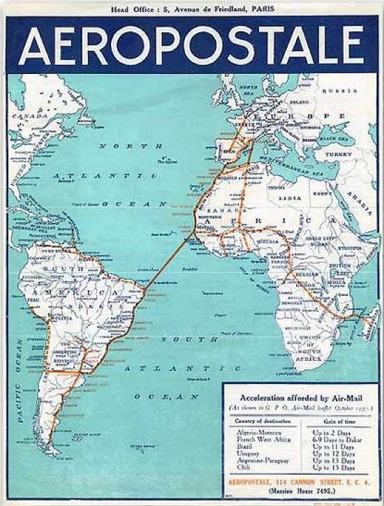 Como ressaltei na coluna anterior, Natal foi quem recebeu o primeiro serviço aeropostal internacional na América do Sul: a diligência partiu em 1o de março de 1928 de Paris por avião até Dacar e de lá para Natal o trajeto ainda foi coberto por embarcações. Daqui de Natal, as encomendas e cartas eram transportadas via aérea para Buenos Aires, Rio e outros destinos do nosso continente. O ganho de tempo foi fantástico. Segundo o historiador Rostand Medeiros, “antes deste novo serviço, uma carta transportada em linhas de navegação normais, poderia demorar até 30 dias entre a França e a Argentina. Com a mala postal aérea francesa, no máximo 8 dias.” – ver post sobre História da Aviação Francesa no Rio Grande do Norte. Dois anos depois, o aviador Jean Mermoz completou a primeira travessia aérea do Atlântico Sul, com chegada em Natal, em 12 e 13 de maio de 1930). E o serviço Aéropostale passou a ser completo para toda a América do Sul, uma vez que a travessia dos Andes, entre Argentina e Chile, já havia sido completada por outro piloto francês, Henri Guillomet, em 1929.