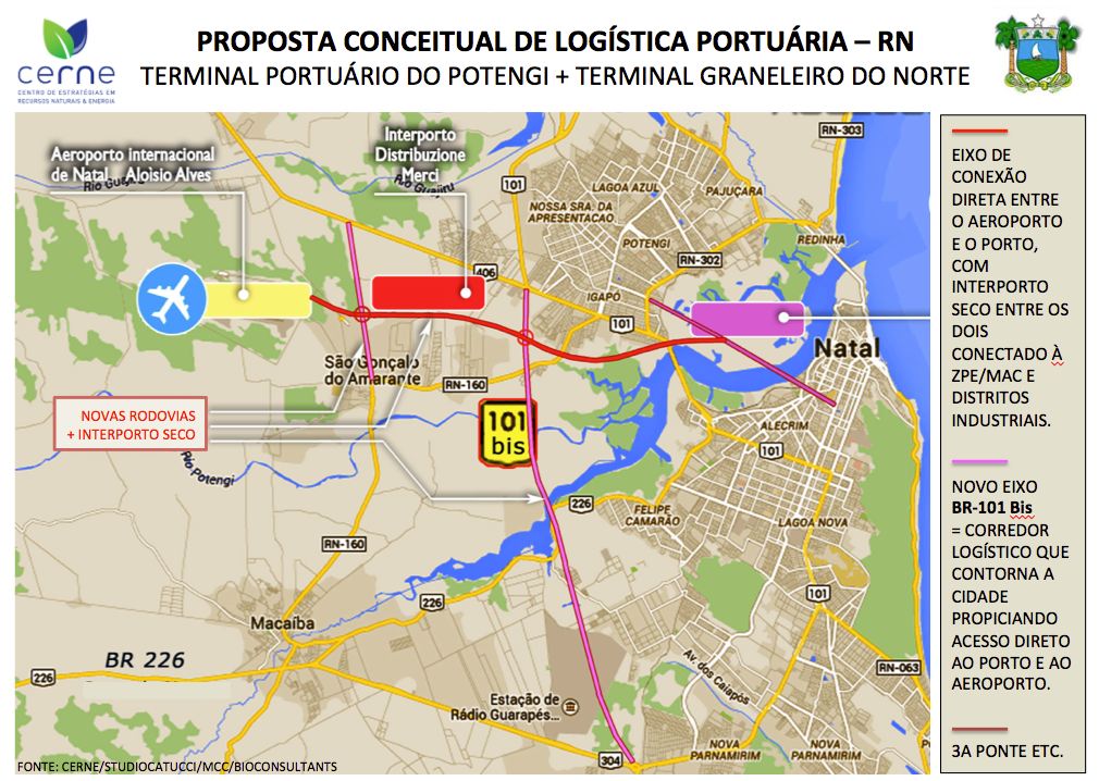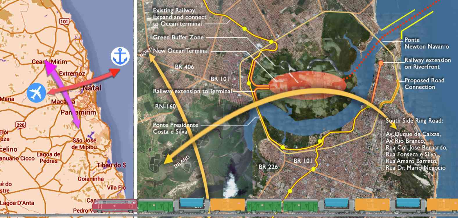 Daí a necessidade urgente que temos de discutir e projetar, de forma concreta e objetiva, o ramal ferroviário Assu-Natal e o terminal portuário de cargas e granéis do Potengi, conforme projeto proposto pelo Centro de Estratégias em Recursos Naturais e Energia – CERNE em consonância com projeto anterior da Companhia Docas do RN (CODERN) ao Governo do Estado e à opinião pública. Este projeto não é apenas uma “alternativa portuária”, e sim um projeto de integração logística intermodal para o Rio Grande do Norte se consolidar como um hub de cargas regional, em termos marítimos, e global, em termos aéreos. Sem a intermodalidade, o hub aéreo estará ameaçado pois a vertente exportadora/importadora será prejudicada pelo atual isolamento terrestre e marítimo do nosso Estado.