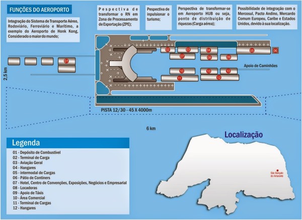 Era, portanto, um aeroporto que não tinha pressa para operar para a Copa, pois dispúnhamos nada menos do que do Aeroporto mais eficiente da Infraero, como foi apontado o Augusto Severo poucos meses antes de fechar. Tínhamos portanto tempo e interesse em desenvolver melhor o novo projeto, com a execução completa dos acessos, com a integração ou incorporação de uma ZPE ou área incentivada industrial semelhante, com integração a um sistema de auto-abastecimento de energia, até com uso de fontes renováveis, enfim, um equipamento que não ficasse apenas bonito por fora pra inglês ver; mas fosse também inteligente e funcional para o desenvolvimento do Estado do Rio Grande do Norte.