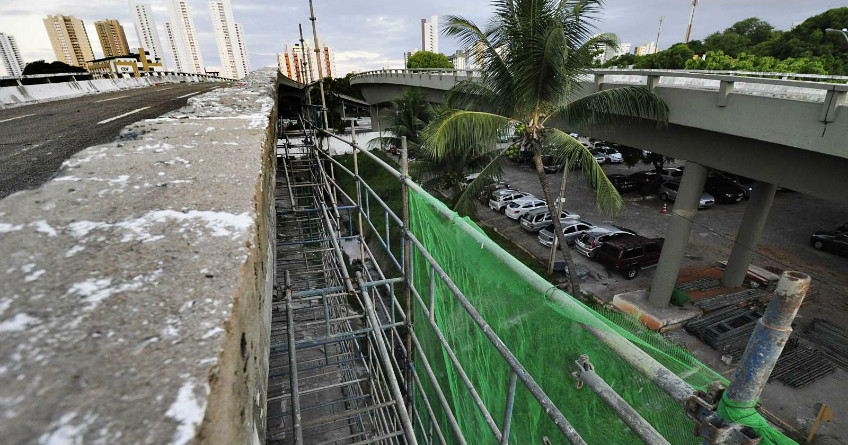 Previsão da Semov é de entregar a obra e liberar a estrutura do viaduto em novembro. Custo da obra subiu para R$ 3 milhões. (Foto: Magnus Nascimento)