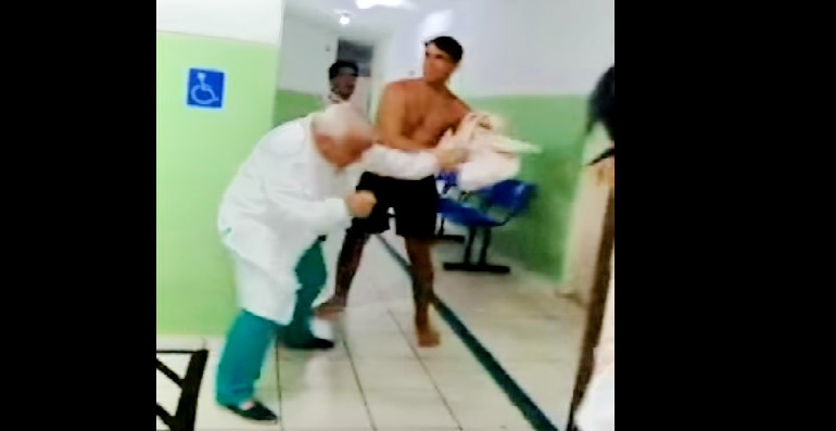 A truculência do jovem já vazou no Youtube. Quem presenciou a cena ou viu o vídeo observa logo que o jovem truculento estava fora de si. No mínimo embriagado, para ser menos enfático. O jovem truculento, que pensa, naturalmente, ser “todo-poderoso”, ou seja, acha que não tem limites, fazia escândalo no Posto Médico quando o médico de plantão, que fazia uma pequena cirurgia num paciente, deixou a sala para pedir ao jovem truculento que se acalmasse que logo que pudesse iria atendê-lo. Qual nada. Recebeu como resposta vários socos que o levou ao chão.