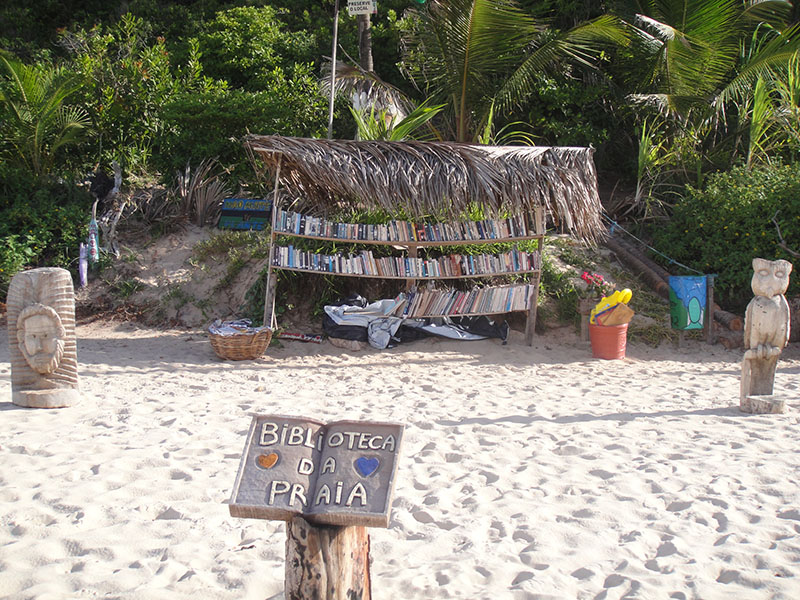 Aberta ao público, a biblioteca pode ser usufruída pelos visitantes na praia, mas também existe a opção de levar o livro para outro local. “Quando as pessoas querem levar cobro um ‘calção’ de R$ 10. Quando o livro volta, o dinheiro está lá. Também faço trocas”, ressalta o criador da Biblioteca da Praia, que mensalmente promove eventos voltados para crianças.