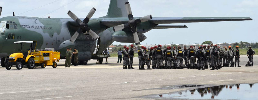 A presença dos agentes da Força Nacional está estipulada em 180 dias. Ontem, em dois voos, desembarcaram 139 homens. Além destes, o RN também recebeu um comboio de Maceió no final da tarde. Desembarcaram em um avião Hercules da Força Aérea Brasileira, que comporta até 10 toneladas e transporta 90 passageiros. Além das tropas, as aeronaves trouxeram veículos e equipamentos para contenção eventuais rebeliões nas unidades prisionais.