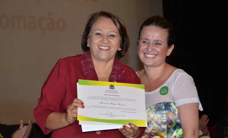 Os candidatos eleitos nas eleições deste ano foram diplomados ontem na solenidade realizada no Centro de Convenções, na Via Costeira. Durante o evento, os deputados federal (Walter Alves) e estadual (Ricardo Motta) mais votados, a senadora eleita Fátima Bezerra (PT) e o governador eleito Robinson Faria (PSD) discursaram para os presentes, além das autoridades do Tribunal Regional Eleitoral e da Ordem dos Advogados do Brasil.