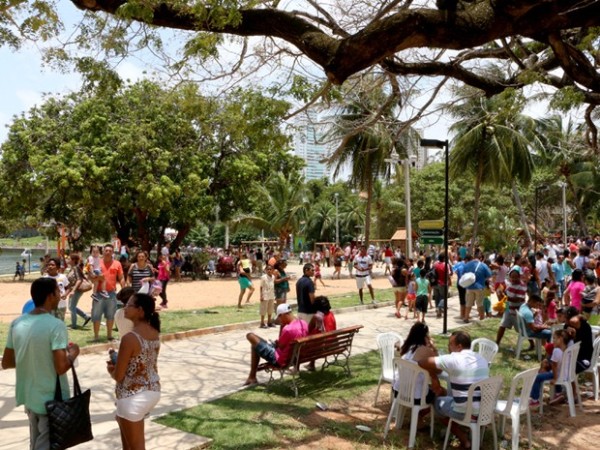 Pais levaram filhos para comemorar o Dia da Criança no parque, em Natal (Foto: Demis Roussos/Assecom)