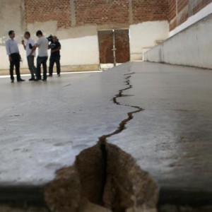 Idosa mostra rachadura provocada pelos sucessivos tremores de terra. (Foto: profsezimar.com )