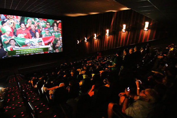 Mesmo havendo opções gratuitas, um número considerável de torcedores têm optado pelos cinemas para acompanhar os jogos da Copa do Mundo. E não são apenas brasileiros. Na última segunda-feira (16), 135 pessoas assistiram ao empate sem gols entre Brasil x México no Cinépolis do Natal Shopping. A esmagadora maioria era do lado verde e amarelo, mas a seleção mexicana teve o apoio de pelo menos dez torcedores do seu país.