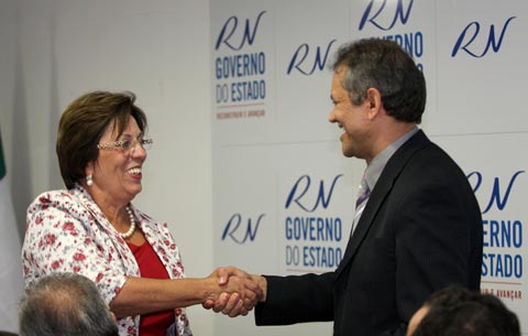 Governadora Rosalba Ciarlini cumprimenta o superintendente regional da Caixa Econômica Federal, Roberto Sérgio Linhares. (fotos: Demis Roussos/Governo do RN)