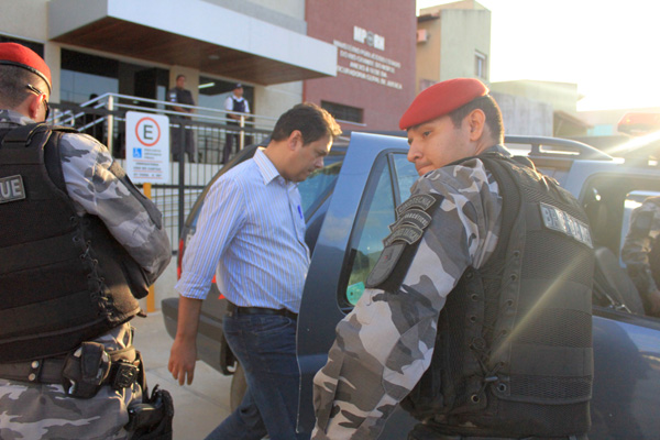 O procurador saiu do Comando da PM pouco antes das 16h. Quatro policiais militares, do Batalhão de Choque, foram os responsáveis pelo trânsito do acusado desde o quartel até a sede da promotoria do Patrimônio Público. Ao chegar ao MPE, Alexandre Magno disse que não daria nenhuma declaração porque ainda está preso. “Só vou falar quando for solto”, disse. Depois, o procurador seguiu para prestar informações ao promotor Emanuel Dhayan.
