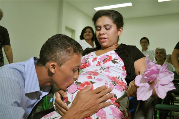 A Maternidade Divino Amor, em Parnamirim, viveu na manhã de ontem uma situação inusitada com o casamento da paciente Fabiana Vieira da Silva, 27 anos, grávida de 7 meses e do vendedor Alisson Rafael, de 22 anos. Com a presença de uma funcionária do cartório, os jovens se casaram, com a presença de duas testemunhas, dos pais e amigos e de funcionárias da unidade que fizeram questão de prestigiar a cerimônia simbólica, conduzida pela enfermeira Carmem Dantas.