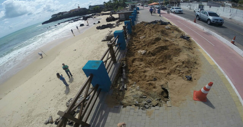 Mesmo com o anúncio feito pela Prefeitura de que as obras estavam concluídas no final de dezembro do ano passado, um trecho de aproximadamente 10 metros do calçadão de Areia Preta, nas proximidades do Shopping de Artesanato, desabou no final da manhã de ontem (27). A área foi isolada para evitar maiores acidentes. O secretário de Obras Públicas e Infraestrutura de Natal (Semov), Tomaz Neto, explicou que o incidente foi causado pela erosão marítima. A cratera foi fechada provisoriamente com areia.