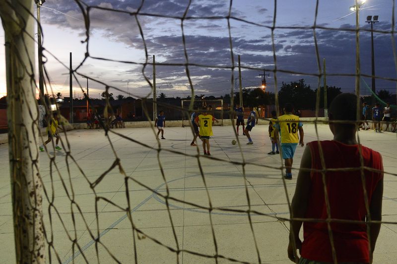 A prometida reforma ainda não chegou na quadra do projeto Aprendendo a Crescer, onde o menino Alexandre Martins, 12 anos, joga. O garoto, que sonha em ser jogador de futebol, diz que há muita coisa melhorar. “Botar o teto, cobrir, reformar a quadra melhor, pintar o piso, mudar as grades… Eu ia ficar muito feliz.”