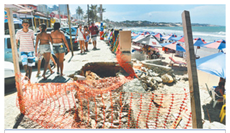 Segundo o trabalhador de um quiosque na praia nas proximidades das obras, João Maradona, turistas e banhistas têm reclamado dos pavimentos espalhados na areia e as descidas para a praia estão danificadas, tendo as pessoas idosas maior dificuldade de terem acesso à praia. Ele conta que uma cliente com idade avançada só não teve a perna quebrada em um acidente no local na última segunda-feira por ter contado com sua ajuda para segurá-la. Maradona diz ainda que as obras no trecho em que atua estão paradas a cerca de 15 dias e outro problema enfrentado é a falta debanheiros públicos na praia.