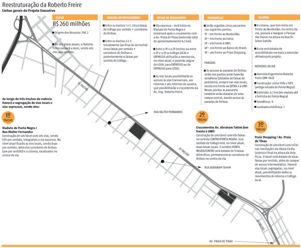 O órgão explica ainda que uma área degradada pode ser recuperada. Mas a intenção do Governo é utilizar a faixa paralela à avenida Roberto Freire – com largura variável entre 30 a 40 metros medidos a partir da cerca atualmente existente – na reestruturação da via.