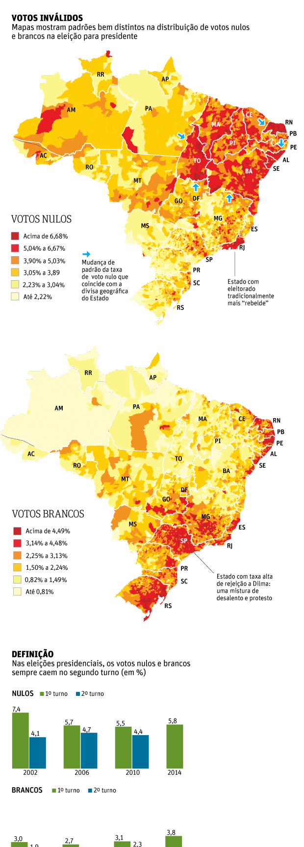 Um exemplo é o Rio Grande do Norte, Estado com a maior taxa de nulos para presidente (9,61%). As divisas do Rio Grande no Norte com o Ceará e a Paraíba coincidem exatamente com as divisas de intensidade de voto nulo.